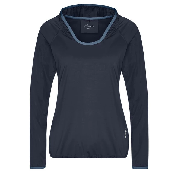 Der Schnürzug im Saum und die Elastik-Einfassungen an den Ärmelabschlüssen und an der Kapuze sorgen auch in der Bewegung für einen guten Sitz. Durch den eher lockeren Schnitt trägt sich das Shirt sehr bequem. Die Flatlock-Nähte sorgen für reibungslosen Tragekomfort und sind an den Schultern versetzt angebracht. Dadurch trägt sich das Shirt auf Wander- und Trekkingtouren auch unter den Schultergurten eines Rucksacks sehr angenehm.